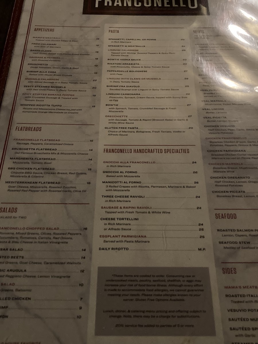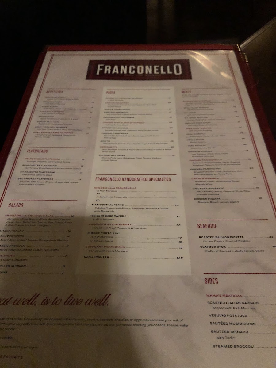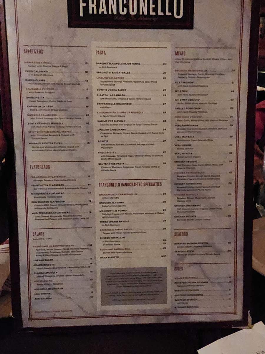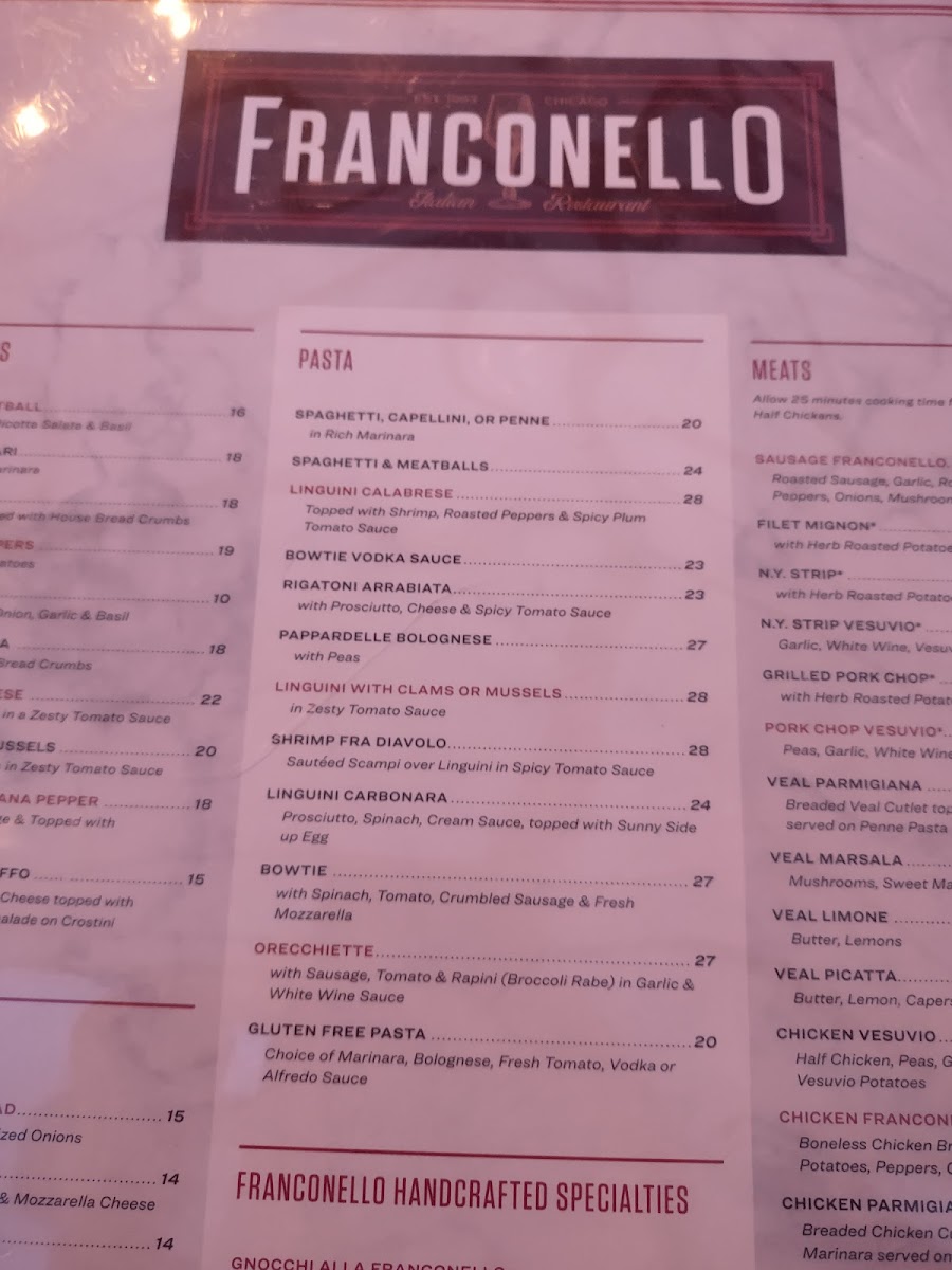 Welcome to Franconello, an Italian gem located at 10222 S Western Ave, Chicago, IL. Known for its delightful blend of seafood and classic Italian dishes, this restaurant offers a menu that sings with flavor. Indulge in the Roasted Salmon Picatta, enriched with lemon and capers, paired perfectly with roasted potatoes for $23. Or dive into the Seafood Stew, a medley of seafood in zesty tomato sauce, also at $23.
